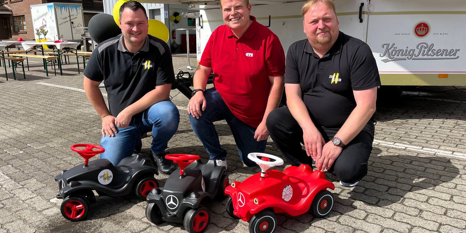 Am Ende des Tages kam von Shift2Passion Nord GmbH und Die Prüfer GmbH eine Gesamtspendensumme von 2200,-€ zusammen die an das Westküstenklinikum Heide auf die Kinderstation mit zwei Bobby Cars geht.